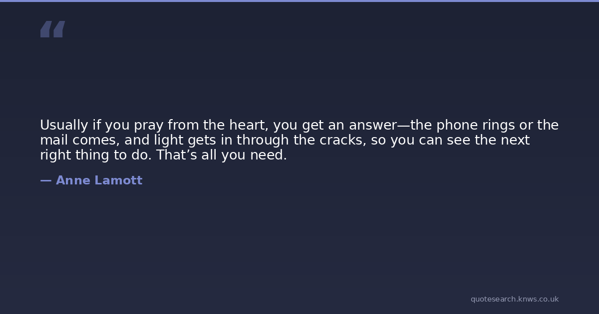 Usually if you pray from the heart, you get an answer—the phone rings or the mail comes, and light gets in through the cracks, so you can see the next right thing to do. That’s all you need.