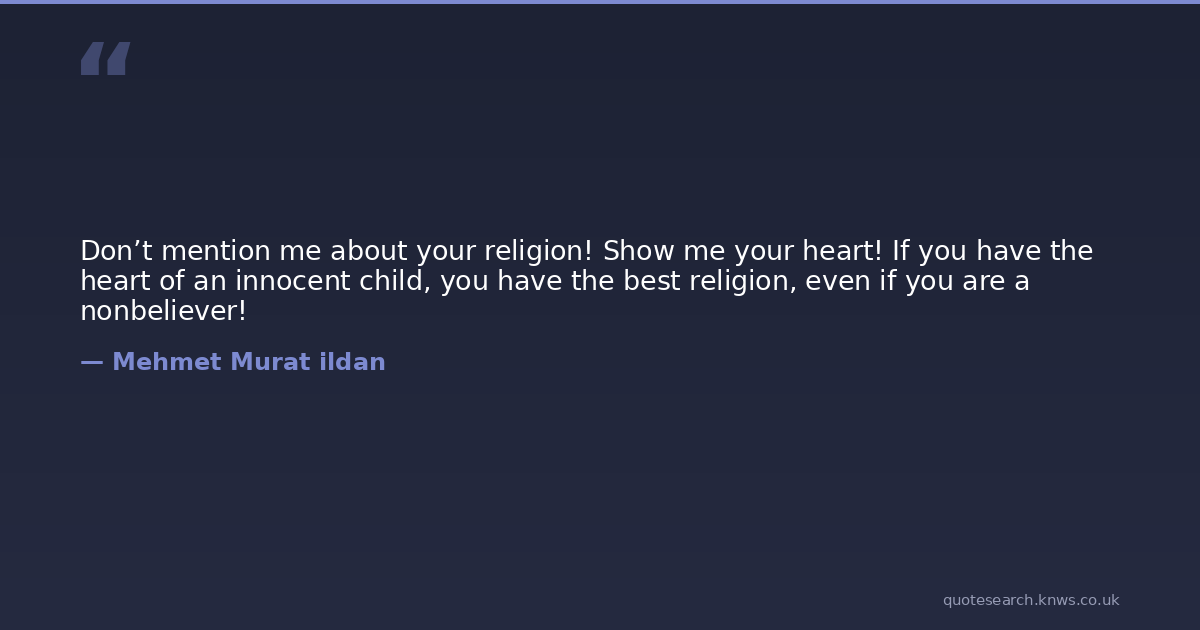 Don’t mention me about your religion! Show me your heart! If you have the heart of an innocent child, you have the best religion, even if you are a nonbeliever!