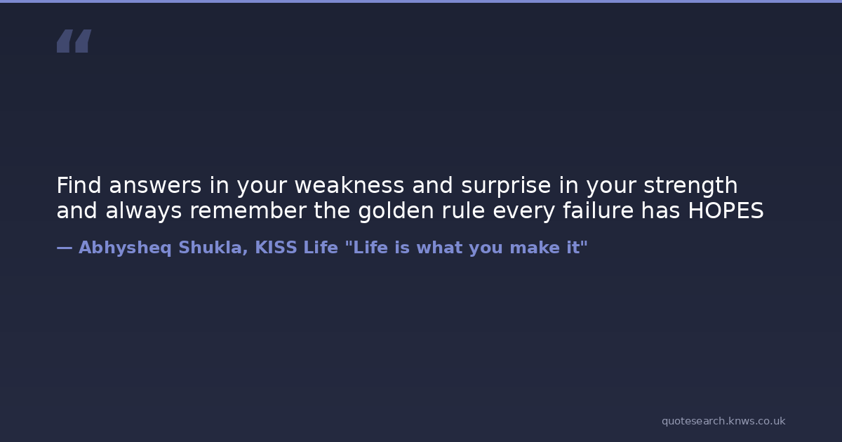 Find answers in your weakness and surprise in your strength and always remember the golden rule every failure has HOPES