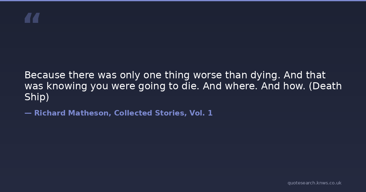 Because there was only one thing worse than dying. And that was knowing you were going to die. And where. And how. (Death Ship)
