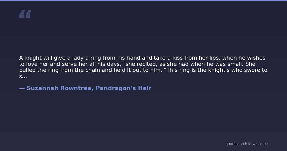 A knight will give a lady a ring from his hand and take a kiss from her lips, when he wishes to love her and serve her all his days," she recited, as she had when he was small. She pulled the ring from the chain and held it out to him. "This ring is the knight's who swore to serve me. Take it. One day you may find a lady to wear it.