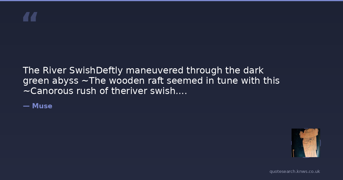 The River SwishDeftly maneuvered through the dark green abyss ~The wooden raft seemed in tune with this ~Canorous rush of theriver swish....
