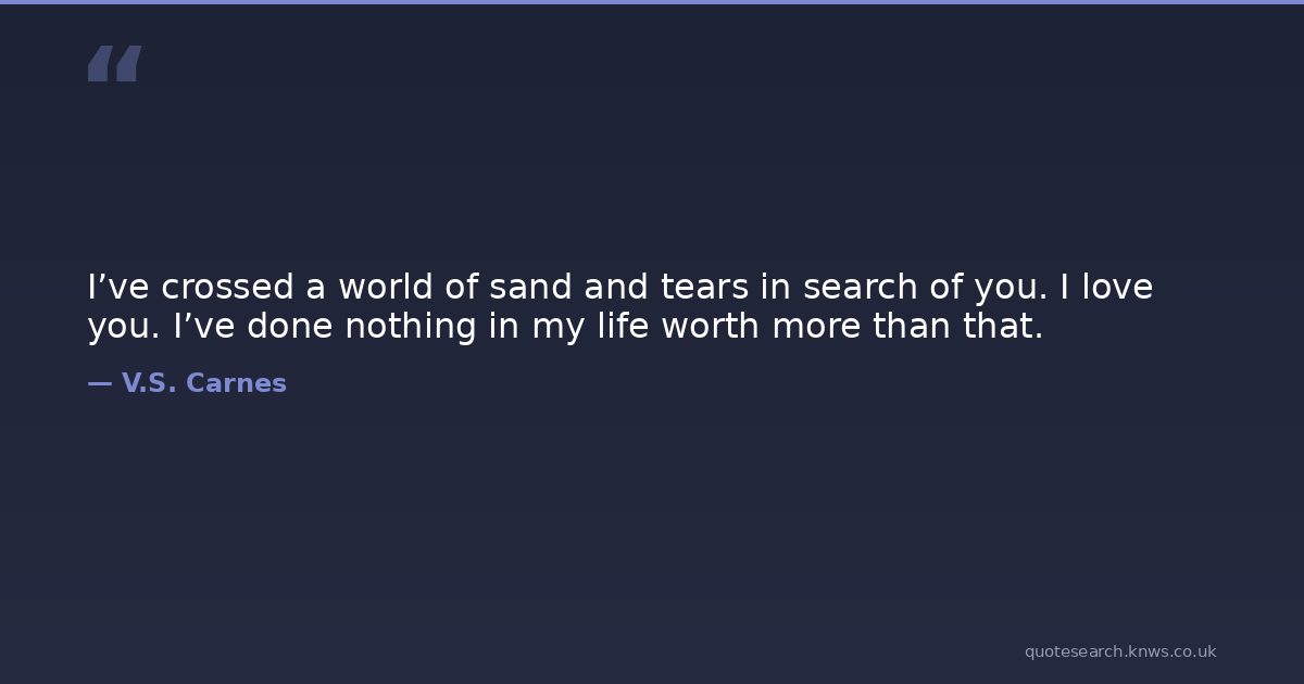 I’ve crossed a world of sand and tears in search of you. I love you. I’ve done nothing in my life worth more than that.