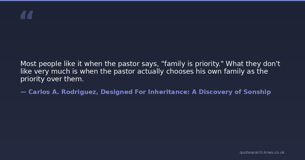 Most people like it when the pastor says, "family is priority." What they don't like very much is when the pastor actually chooses his own family as the priority over them.