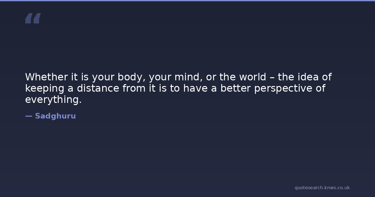 Whether it is your body, your mind, or the world – the idea of keeping a distance from it is to have a better perspective of everything.