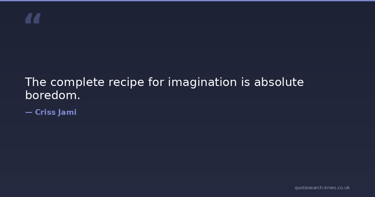 The complete recipe for imagination is absolute boredom.