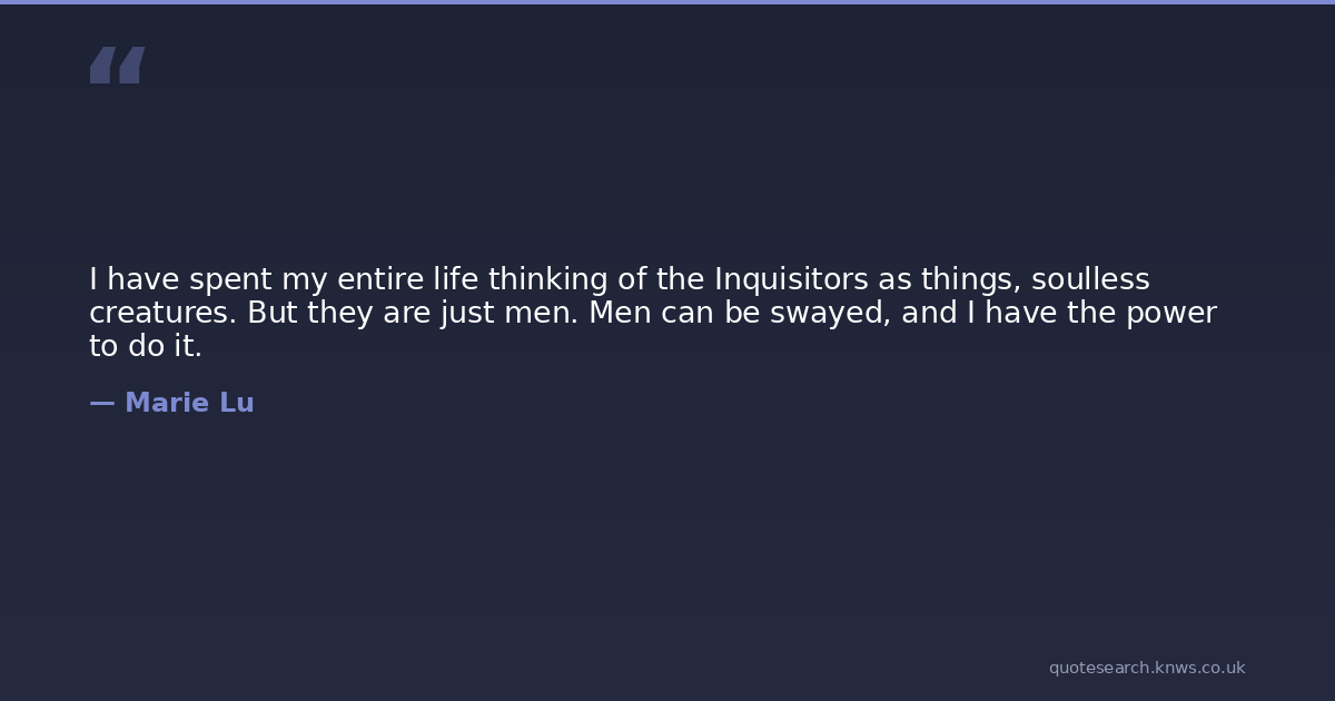 I have spent my entire life thinking of the Inquisitors as things, soulless creatures. But they are just men. Men can be swayed, and I have the power to do it.