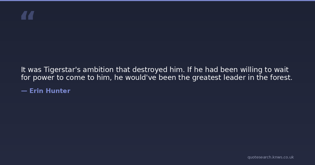 It was Tigerstar's ambition that destroyed him. If he had been willing to wait for power to come to him, he would've been the greatest leader in the forest.