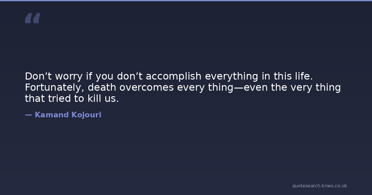 Don’t worry if you don’t accomplish everything in this life. Fortunately, death overcomes every thing—even the very thing that tried to kill us.