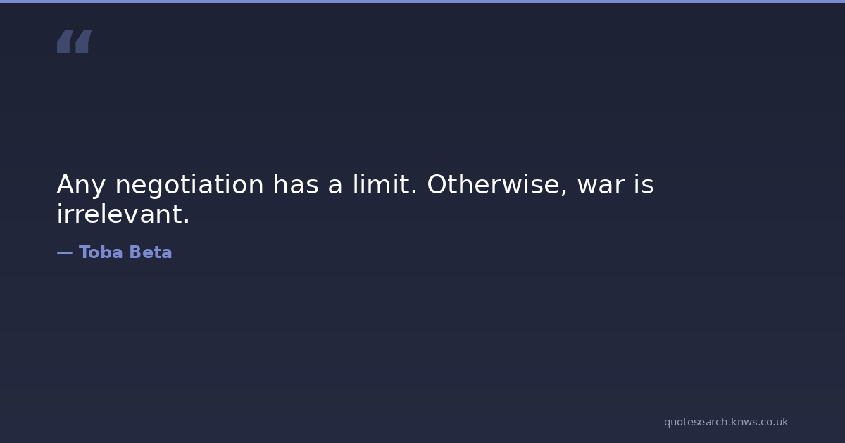 Any negotiation has a limit. Otherwise, war is irrelevant. irrelevant limit negotiation war Download Image Share on X Share on Facebook Copy Link