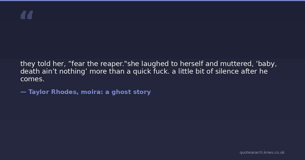 they told her, “fear the reaper."she laughed to herself and muttered, 'baby, death ain’t nothing’ more than a quick fuck. a little bit of silence after he comes.