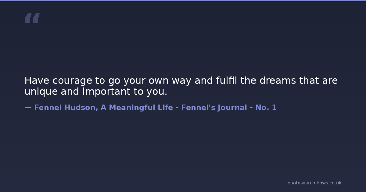 Have courage to go your own way and fulfil the dreams that are unique and important to you. courage direction dreams fulfilling-purpose importance purpose Download Image Share on X Share on Facebook Copy Link