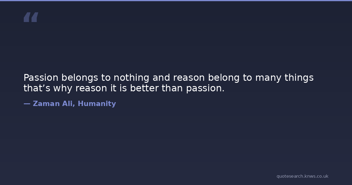 Passion belongs to nothing and reason belong to many things that’s why reason it is better than passion.