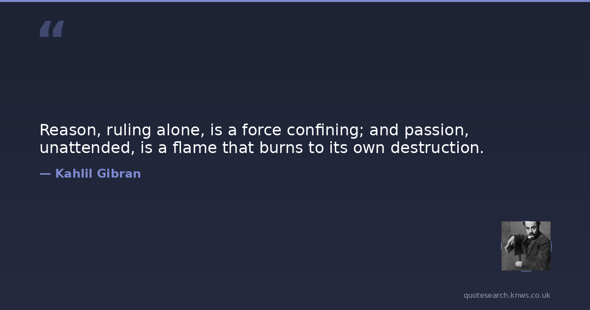 Reason, ruling alone, is a force confining; and passion, unattended, is a flame that burns to its own destruction.