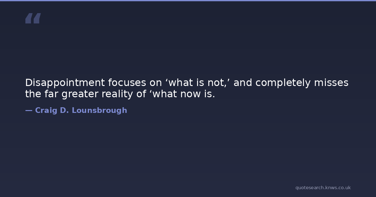Disappointment focuses on ‘what is not,’ and completely misses the far greater reality of ‘what now is.