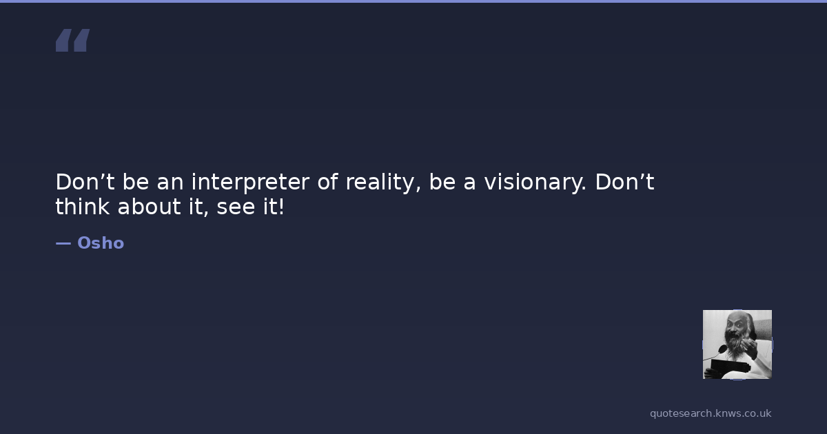 Don’t be an interpreter of reality, be a visionary. Don’t think about it, see it!
