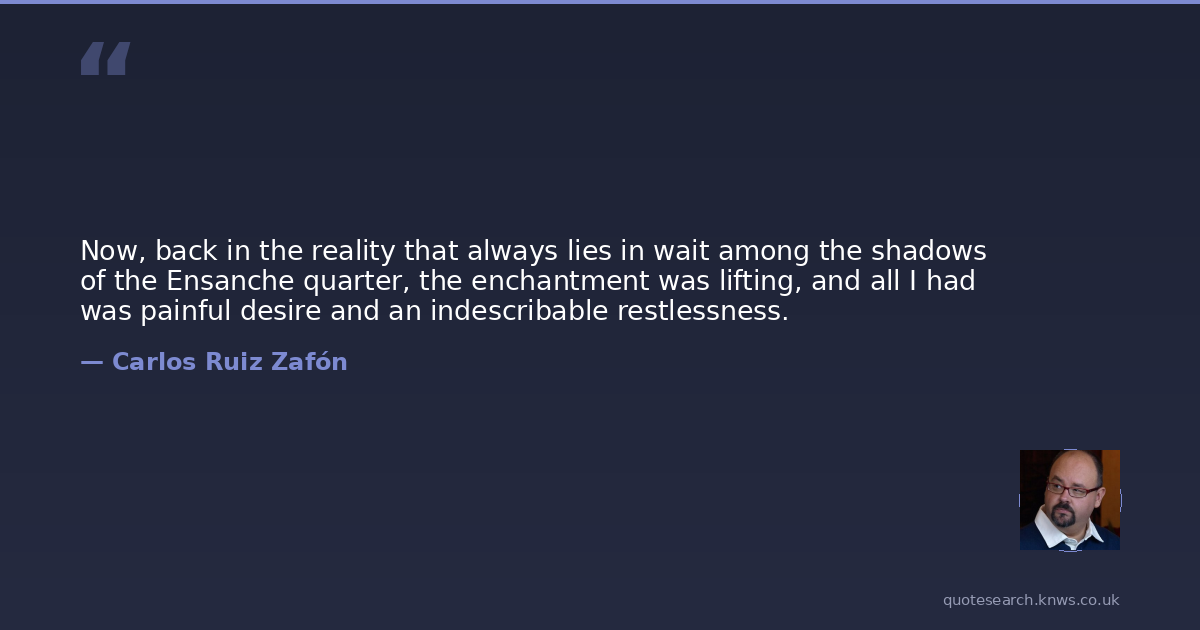 Now, back in the reality that always lies in wait among the shadows of the Ensanche quarter, the enchantment was lifting, and all I had was painful desire and an indescribable restlessness.