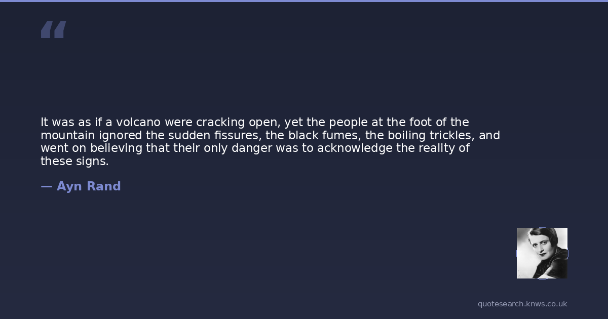 It was as if a volcano were cracking open, yet the people at the foot of the mountain ignored the sudden fissures, the black fumes, the boiling trickles, and went on believing that their only danger was to acknowledge the reality of these signs.