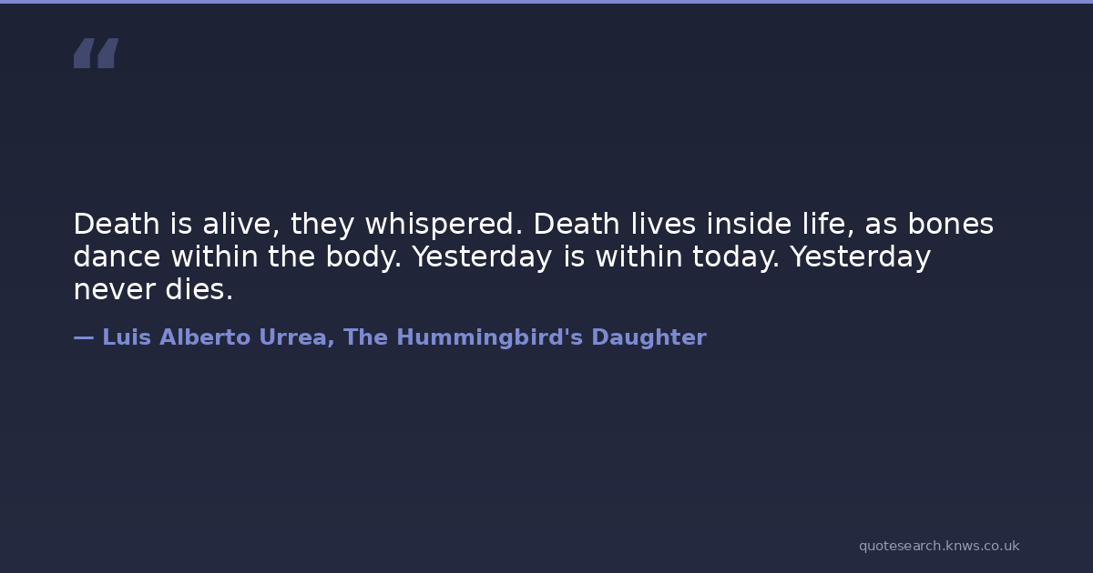 Death is alive, they whispered. Death lives inside life, as bones dance within the body. Yesterday is within today. Yesterday never dies.