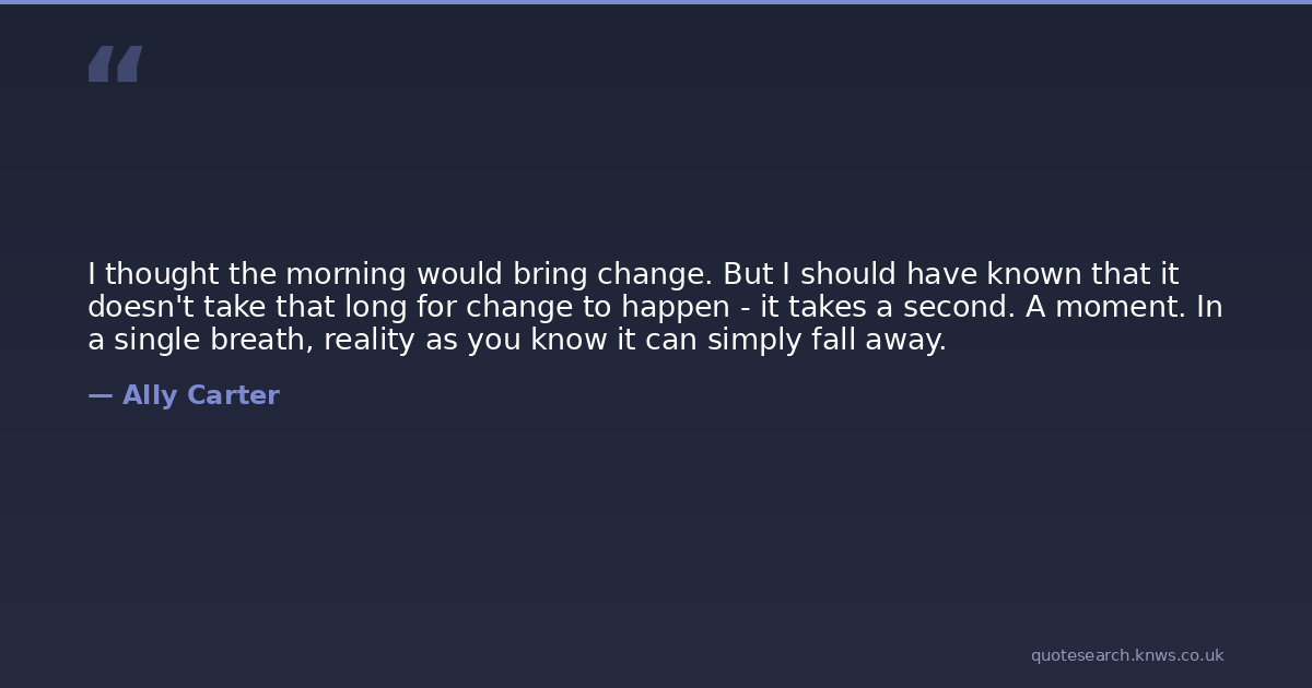 I thought the morning would bring change. But I should have known that it doesn't take that long for change to happen - it takes a second. A moment. In a single breath, reality as you know it can simply fall away.