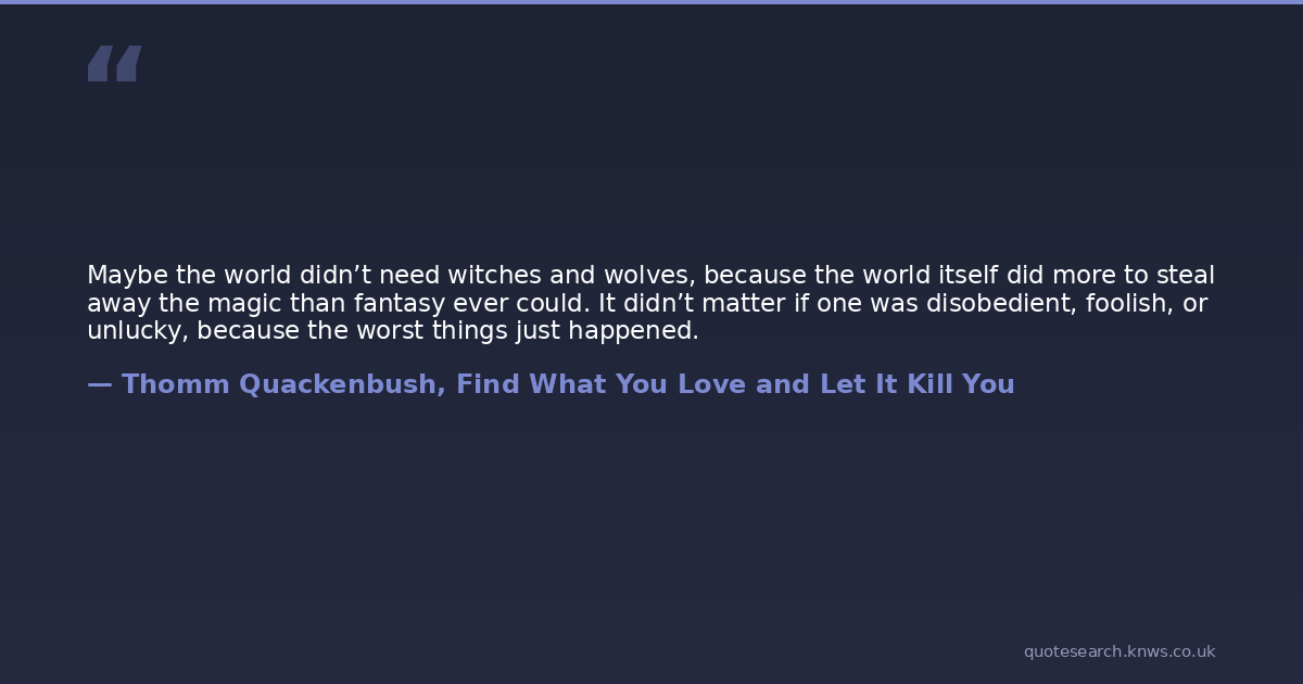 Maybe the world didn’t need witches and wolves, because the world itself did more to steal away the magic than fantasy ever could. It didn’t matter if one was disobedient, foolish, or unlucky, because the worst things just happened.