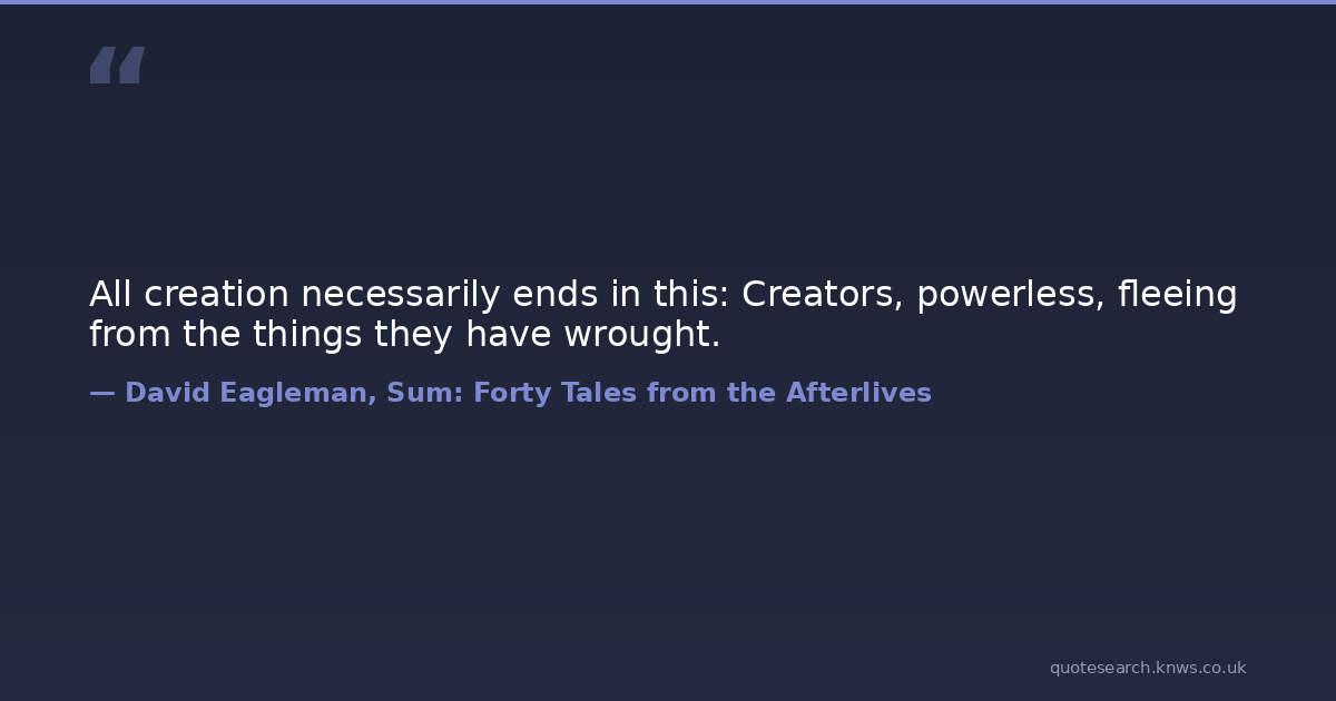 All creation necessarily ends in this: Creators, powerless, fleeing from the things they have wrought.