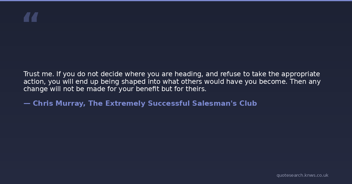 Trust me. If you do not decide where you are heading, and refuse to take the appropriate action, you will end up being shaped into what others would have you become. Then any change will not be made for your benefit but for theirs.