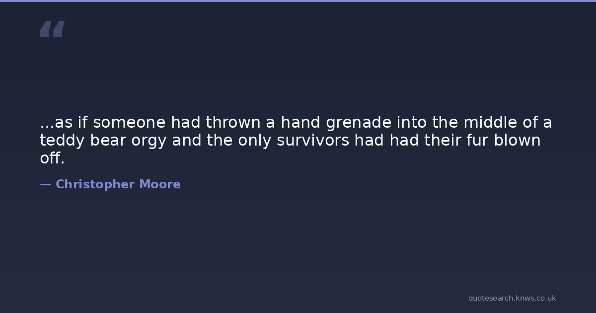 ...as if someone had thrown a hand grenade into the middle of a teddy bear orgy and the only survivors had had their fur blown off.