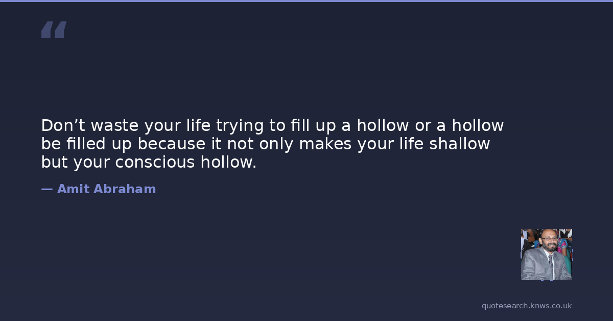 Don’t waste your life trying to fill up a hollow or a hollow be filled up because it not only makes your life shallow but your conscious hollow.