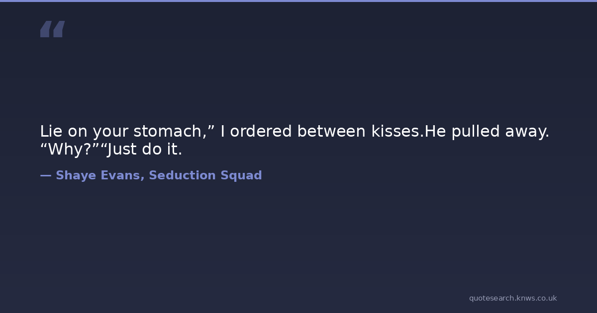 Lie on your stomach,” I ordered between kisses.He pulled away. “Why?”“Just do it.