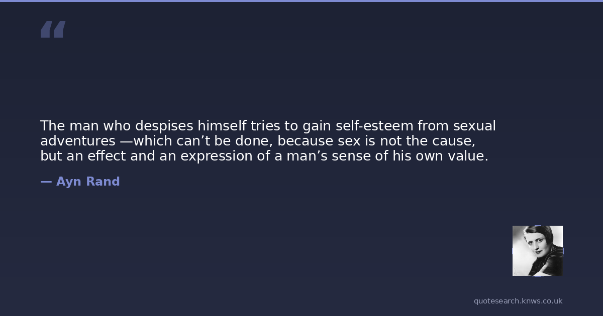 The man who despises himself tries to gain self-esteem from sexual adventures —which can’t be done, because sex is not the cause, but an effect and an expression of a man’s sense of his own value.