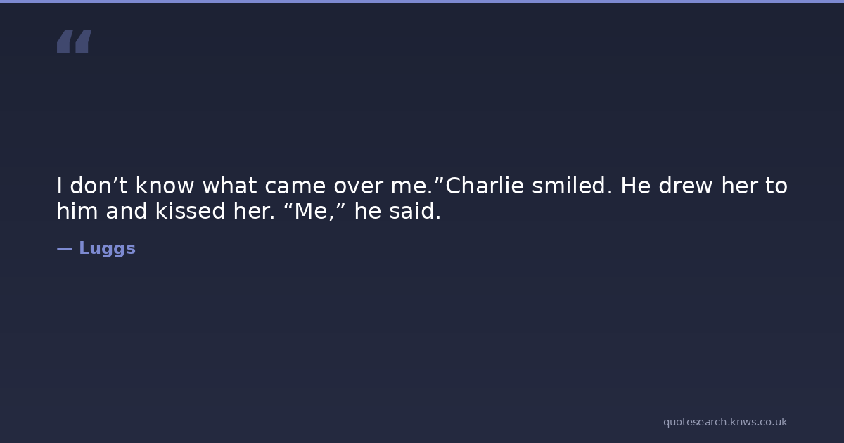 I don’t know what came over me.”Charlie smiled. He drew her to him and kissed her. “Me,” he said.