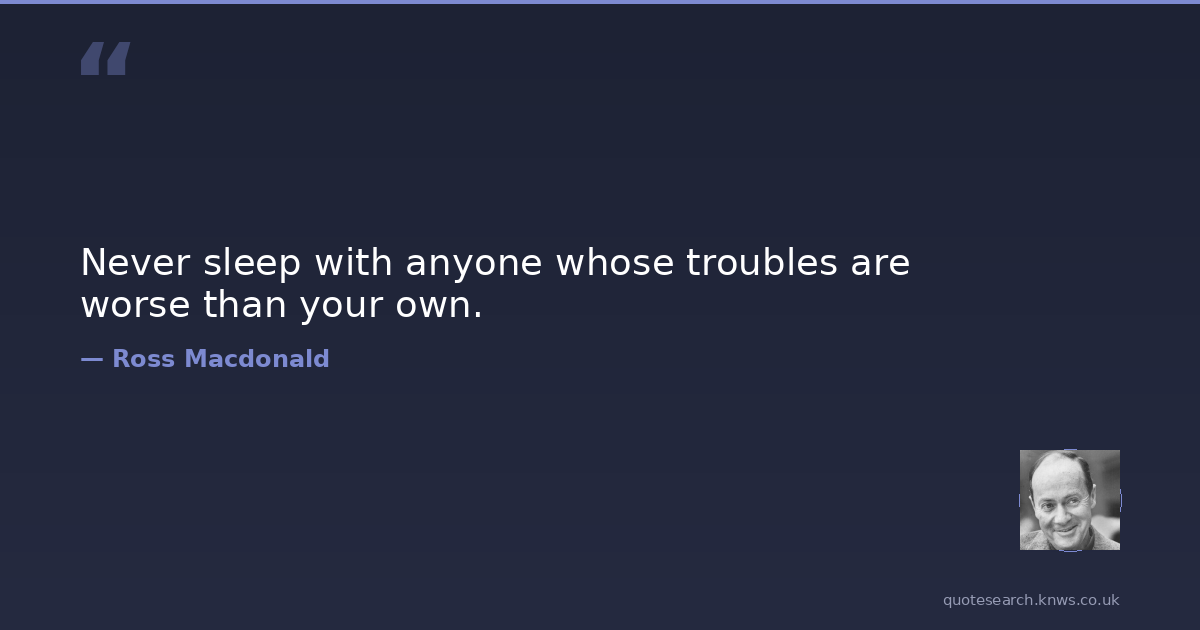 Never sleep with anyone whose troubles are worse than your own.