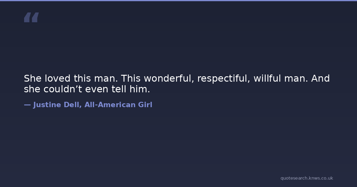 She loved this man. This wonderful, respectiful, willful man. And she couldn’t even tell him.