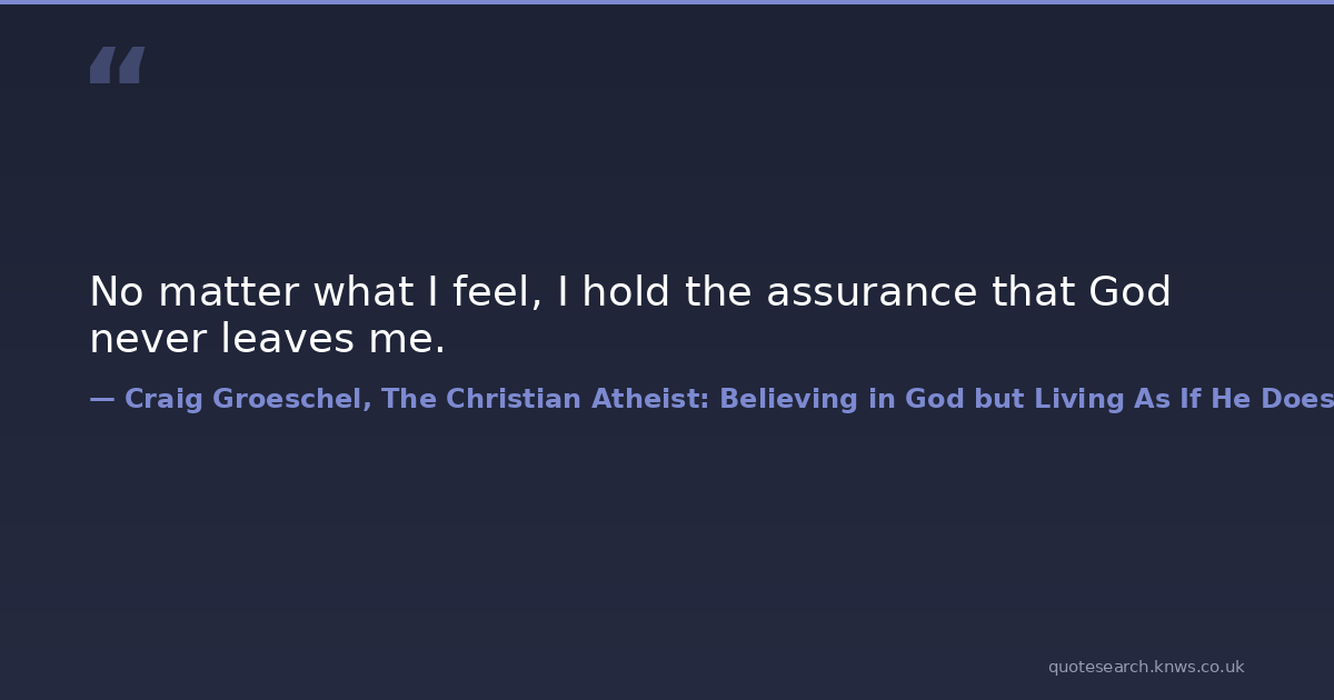No matter what I feel, I hold the assurance that God never leaves me.
