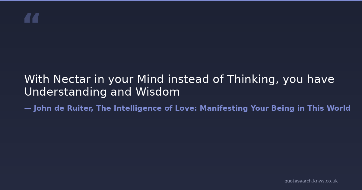 With Nectar in your Mind instead of Thinking, you have Understanding and Wisdom inspiraional-quotes inspiring-quotes mind-body-spirit spiritual-quotes spiritual-wisdom thinking-outside-of-the-box wisdom-quotes Download Image Share on X Share on Facebook Copy Link