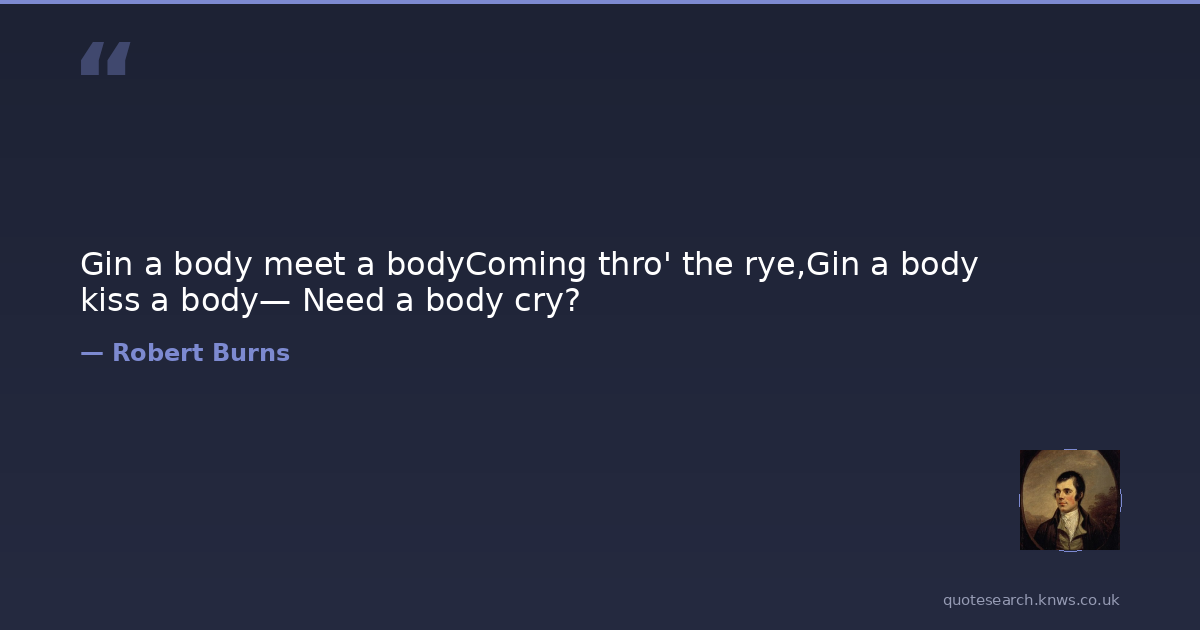 Gin a body meet a bodyComing thro' the rye,Gin a body kiss a body— Need a body cry?