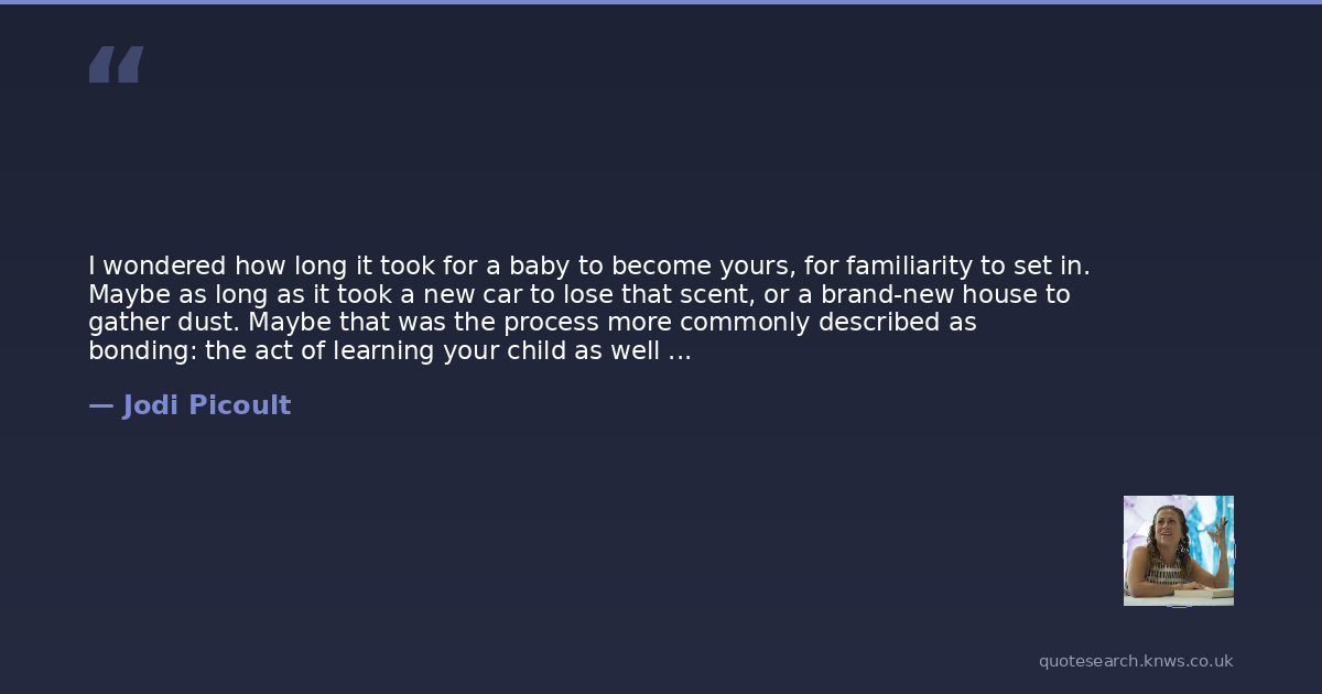 I wondered how long it took for a baby to become yours, for familiarity to set in. Maybe as long as it took a new car to lose that scent, or a brand-new house to gather dust. Maybe that was the process more commonly described as bonding: the act of learning your child as well as you know yourself.