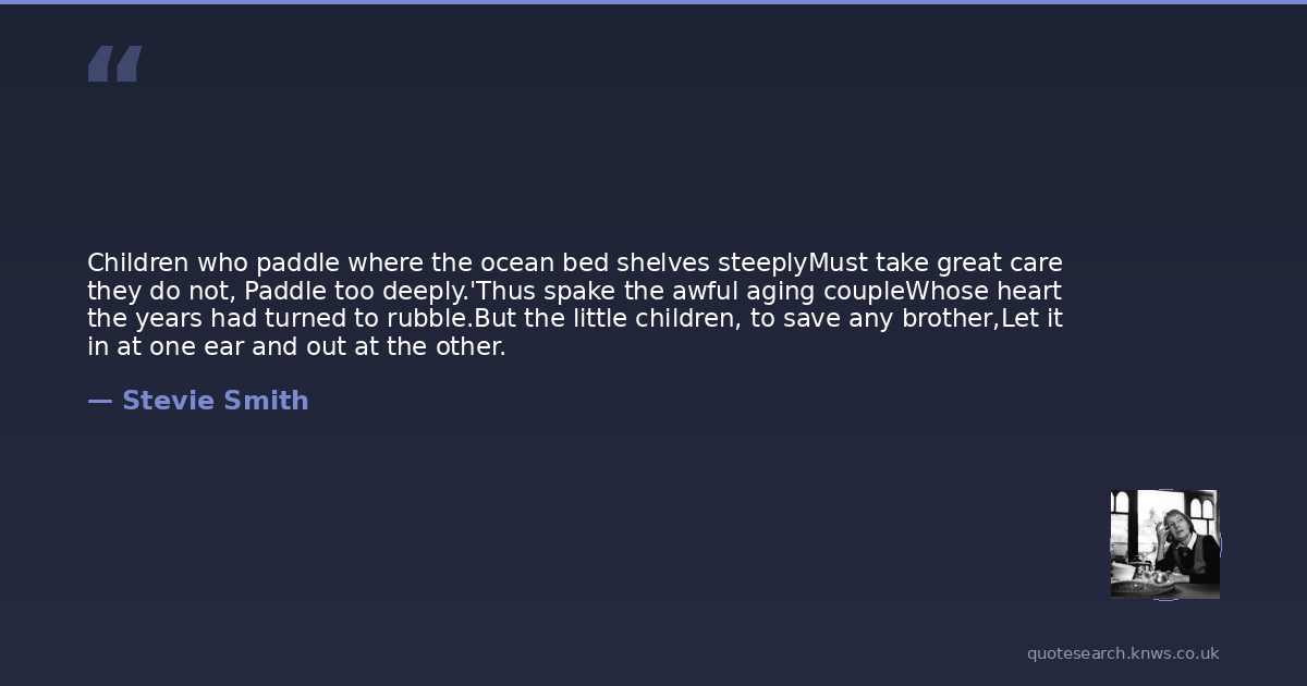 Children who paddle where the ocean bed shelves steeplyMust take great care they do not, Paddle too deeply.'Thus spake the awful aging coupleWhose heart the years had turned to rubble.But the little children, to save any brother,Let it in at one ear and out at the other.