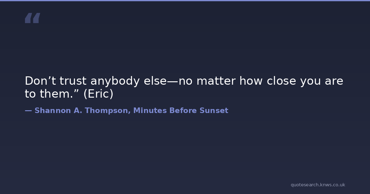 Don’t trust anybody else—no matter how close you are to them.” (Eric)