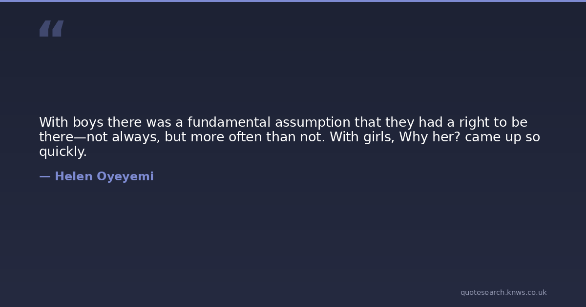 With boys there was a fundamental assumption that they had a right to be there—not always, but more often than not. With girls, Why her? came up so quickly.