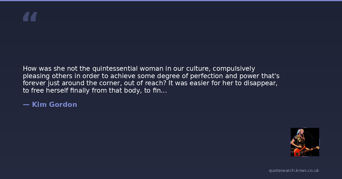 How was she not the quintessential woman in our culture, compulsively pleasing others in order to achieve some degree of perfection and power that's forever just around the corner, out of reach? It was easier for her to disappear, to free herself finally from that body, to find a perfection in dying.