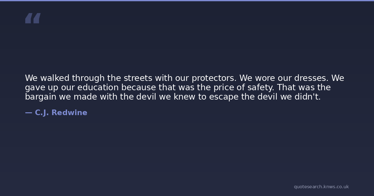 We walked through the streets with our protectors. We wore our dresses. We gave up our education because that was the price of safety. That was the bargain we made with the devil we knew to escape the devil we didn't.