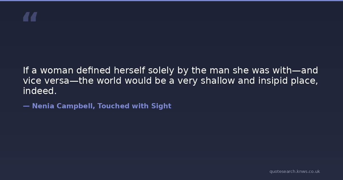 If a woman defined herself solely by the man she was with—and vice versa—the world would be a very shallow and insipid place, indeed.