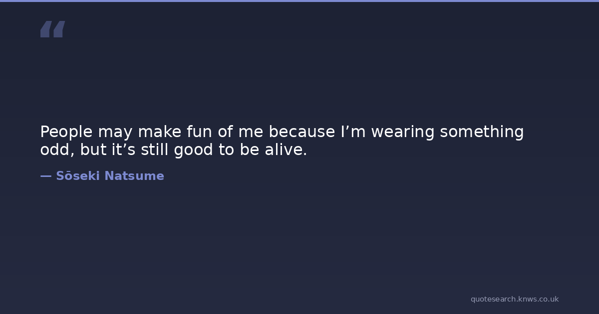 People may make fun of me because I’m wearing something odd, but it’s still good to be alive. conventions human-condition living society Download Image Share on X Share on Facebook Copy Link