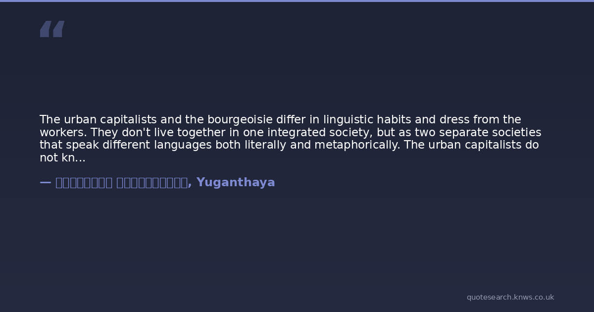 The urban capitalists and the bourgeoisie differ in linguistic habits and dress from the workers. They don't live together in one integrated society, but as two separate societies that speak different languages both literally and metaphorically. The urban capitalists do not know the life led by workers. Workers experience hardships that are unheard of amongst villagers and these evoke malice in the urban workers, easily stirred by union leaders who use them to ride to power. Villagers are different. Teaching the villagers cannot easily change what they have inherited from the environment and the past they have known and in which they have grown up. The village entrepreneur wore only a sarong in the past. Some of them wore a sarong and slung another over a shoulder. The poor villager's dress is also a sarong. The village entrepreneur speaks Sinhalese, which is the language of the poor villager too. On the day of the traditional New Year, the children of both the rich and the poor in the village eat together and play together in the homes of the villager elite. All this subdues feelings of resentment against the wealthy villagers. It's true that villagers suffer a great deal on account of their poverty. But unlike the urban poor, poverty amongst the villagers does not incite malice toward the wealthy, due to the rural way of life.