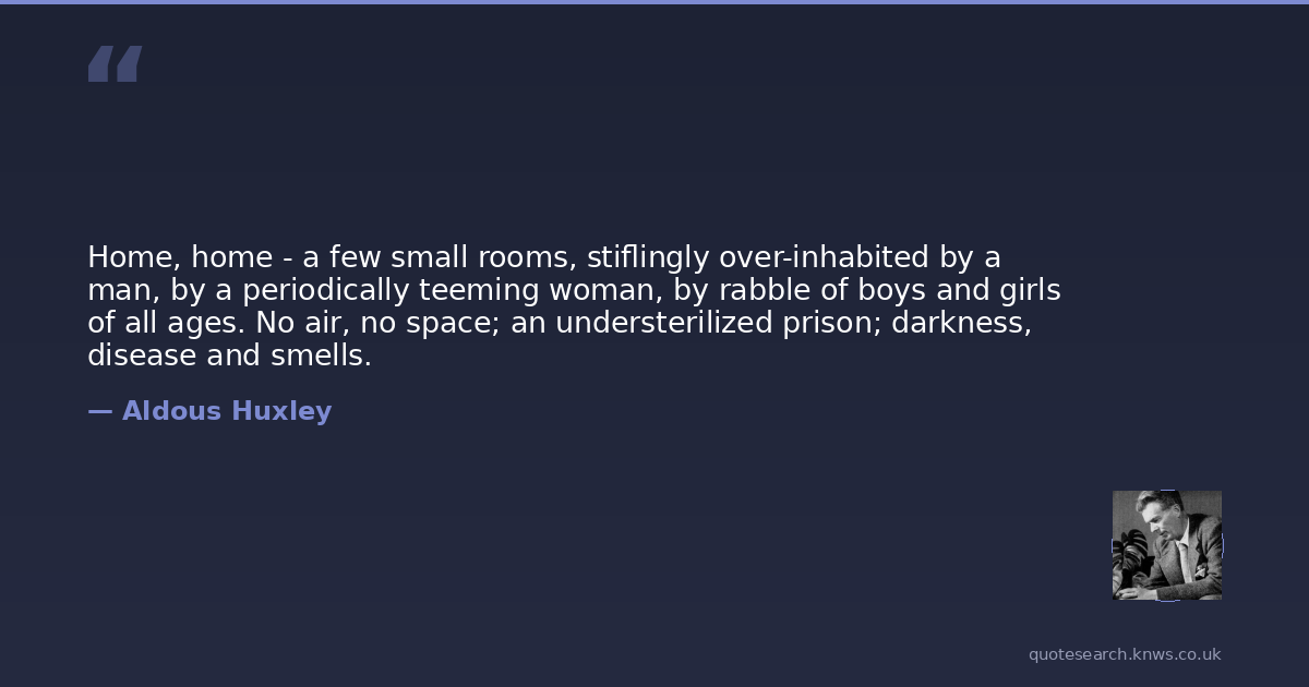 Home, home - a few small rooms, stiflingly over-inhabited by a man, by a periodically teeming woman, by rabble of boys and girls of all ages. No air, no space; an understerilized prison; darkness, disease and smells.