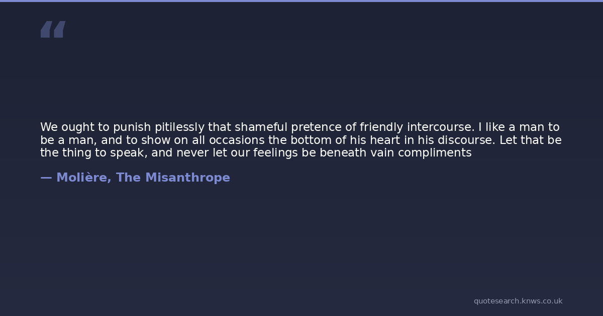 We ought to punish pitilessly that shameful pretence of friendly intercourse. I like a man to be a man, and to show on all occasions the bottom of his heart in his discourse. Let that be the thing to speak, and never let our feelings be beneath vain compliments