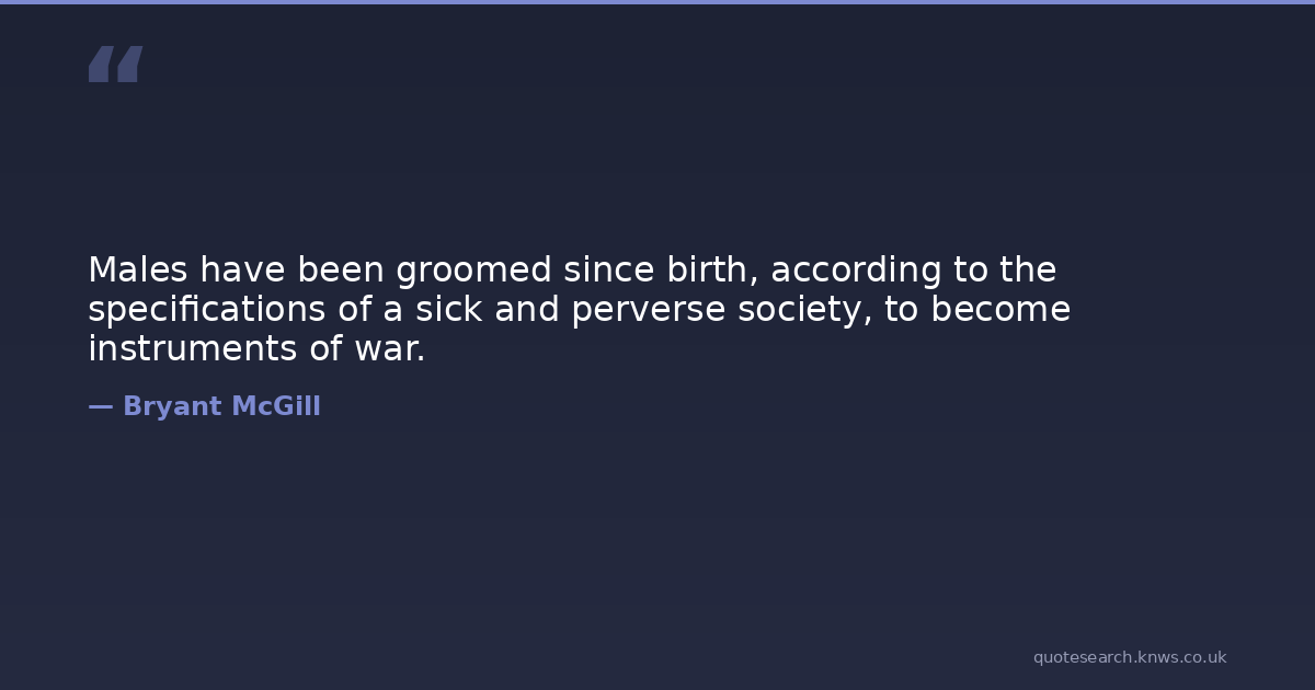 Males have been groomed since birth, according to the specifications of a sick and perverse society, to become instruments of war.