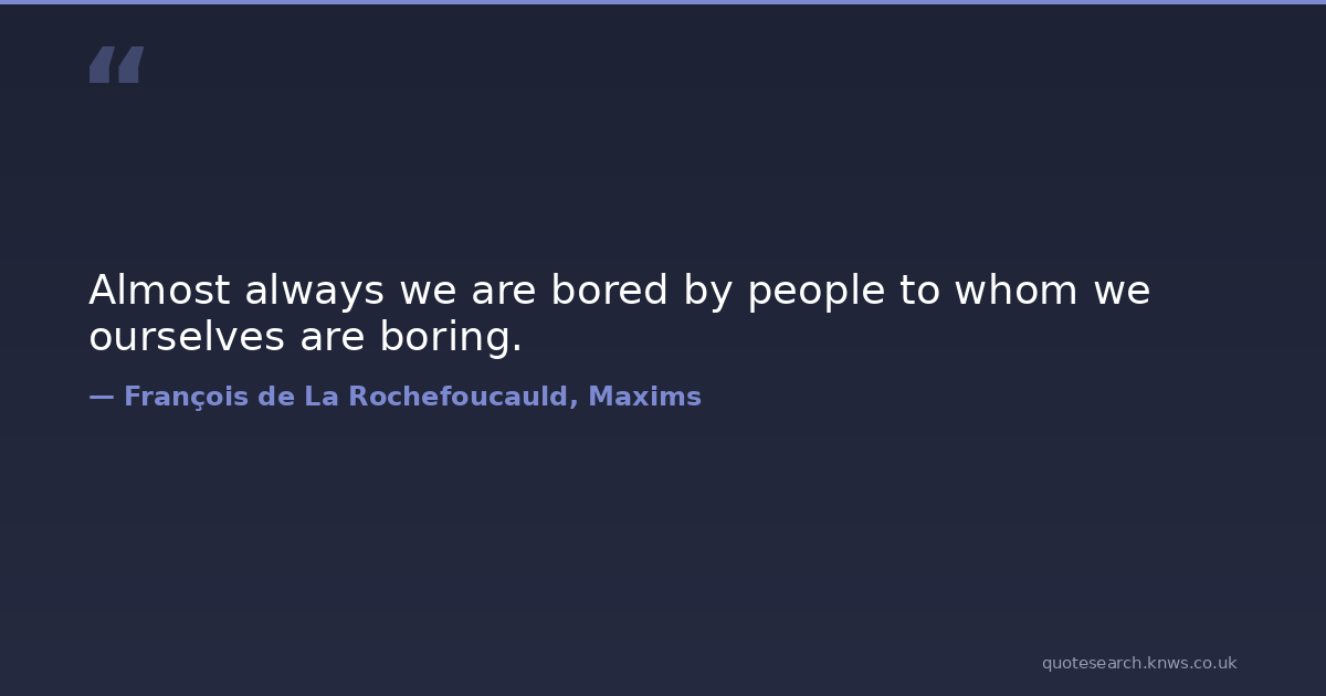 Almost always we are bored by people to whom we ourselves are boring. boredom people society Download Image Share on X Share on Facebook Copy Link